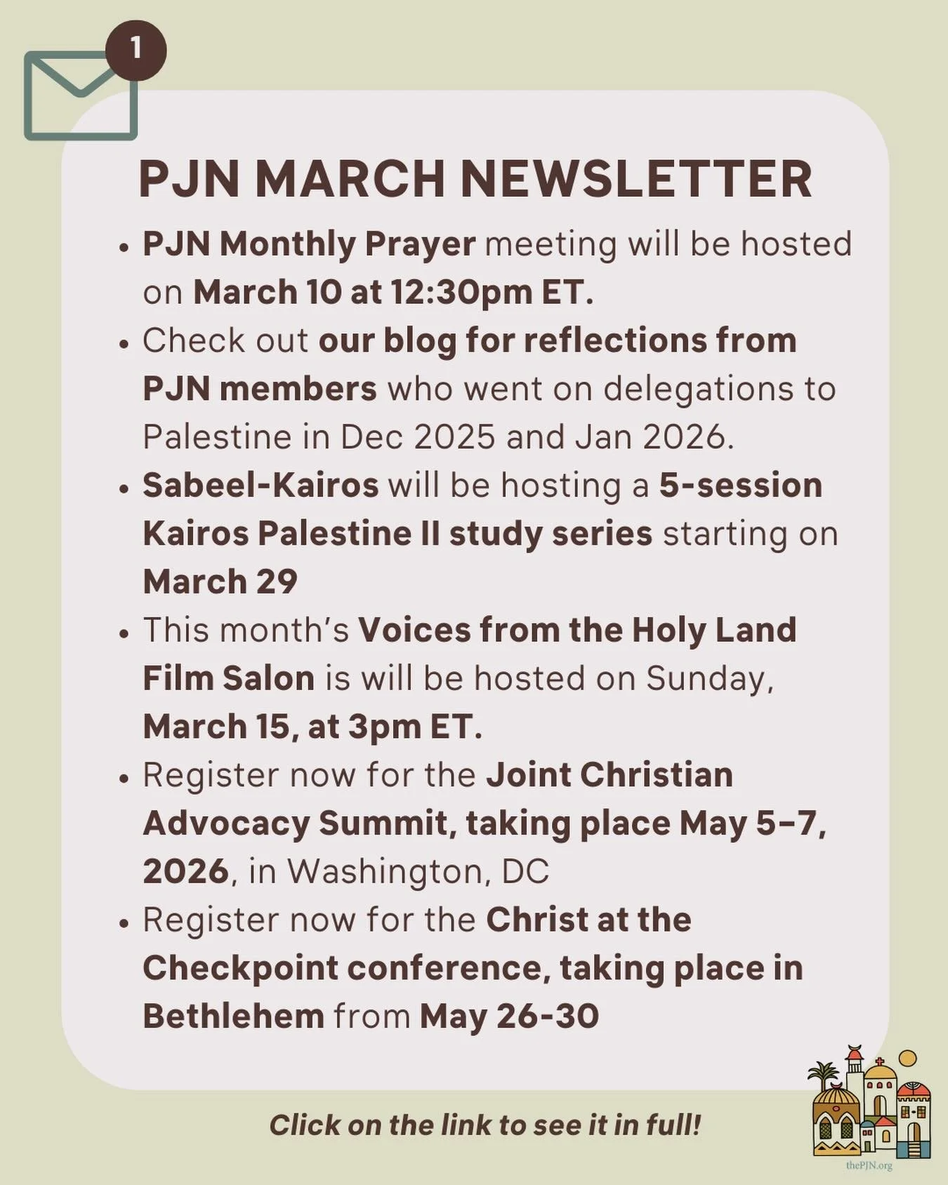 Developed by The Palestine Justice Network (PJN) of the Presbyterian Church (U.S.A.), with United Methodists for Kairos Response (UMKR), and Friends of Sabeel North America (FOSNA), the study guide is a free digital download. It is available now at our websites in February, for use as a 2026 Lenten Study and throughout the year.