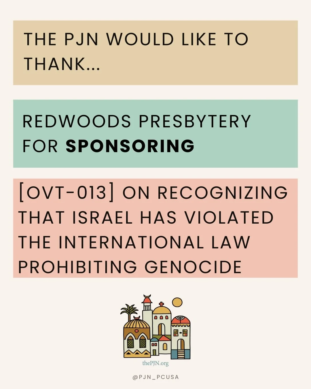The PJN is advocating for two overtures going to the 227th General Assembly!