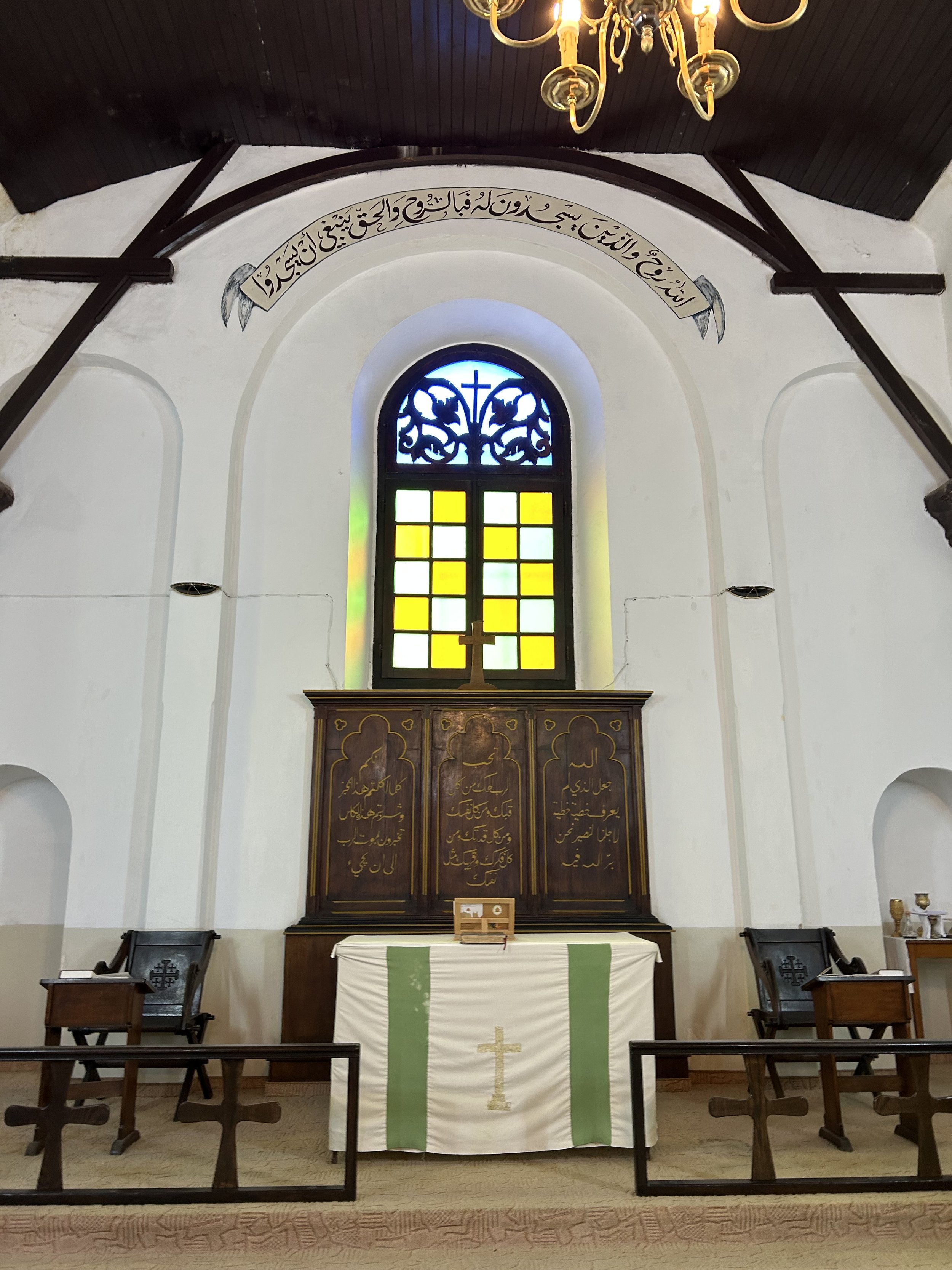 Father Jamil, the Rector of St. Philip's, gave us a brief tour of the church and kindergarten. The altar displays a beautiful verse in Arabic: "God is Spirit, and those who worship Him must worship in spirit and truth." The kindergarten serves around 50 children and has to be regularly evacuated due to tear gas and shooting from the Israeli Army. Due to the shrinking Christian community, the church does significant ecumenical work, including an ecumenical Sunday school. They even have a partnership with a PC(USA) church in West Virginia, where Palestinian youth travel to experience life there. They're working on building a summer program for volunteers.