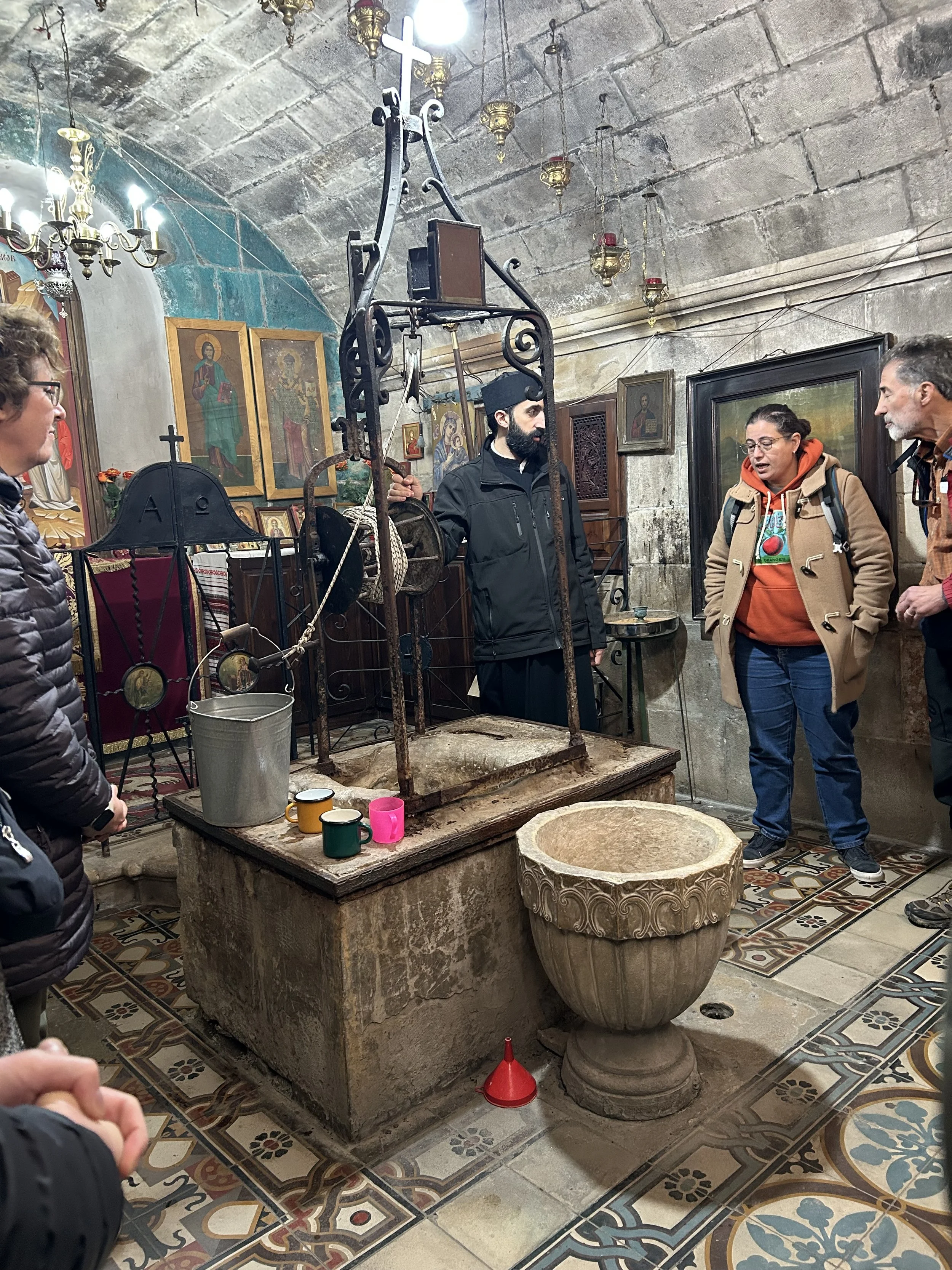 What affected me most was a story the supply priest told us (not Father Justinius, but another priest caring for the church that day). He explained that the previous priest before Fr. Justinius had been murdered right where we stood by an extremist attacker, his body chopped into 39 pieces. It felt morbid yet sacred that this place where Jacob met Rachel, where Jesus met the Samaritan woman, could be so peaceful, calming, and centering. A cool cup of water in the midst of the desert. And yet, the priest repeated several times: "No one comes to the church anymore."
