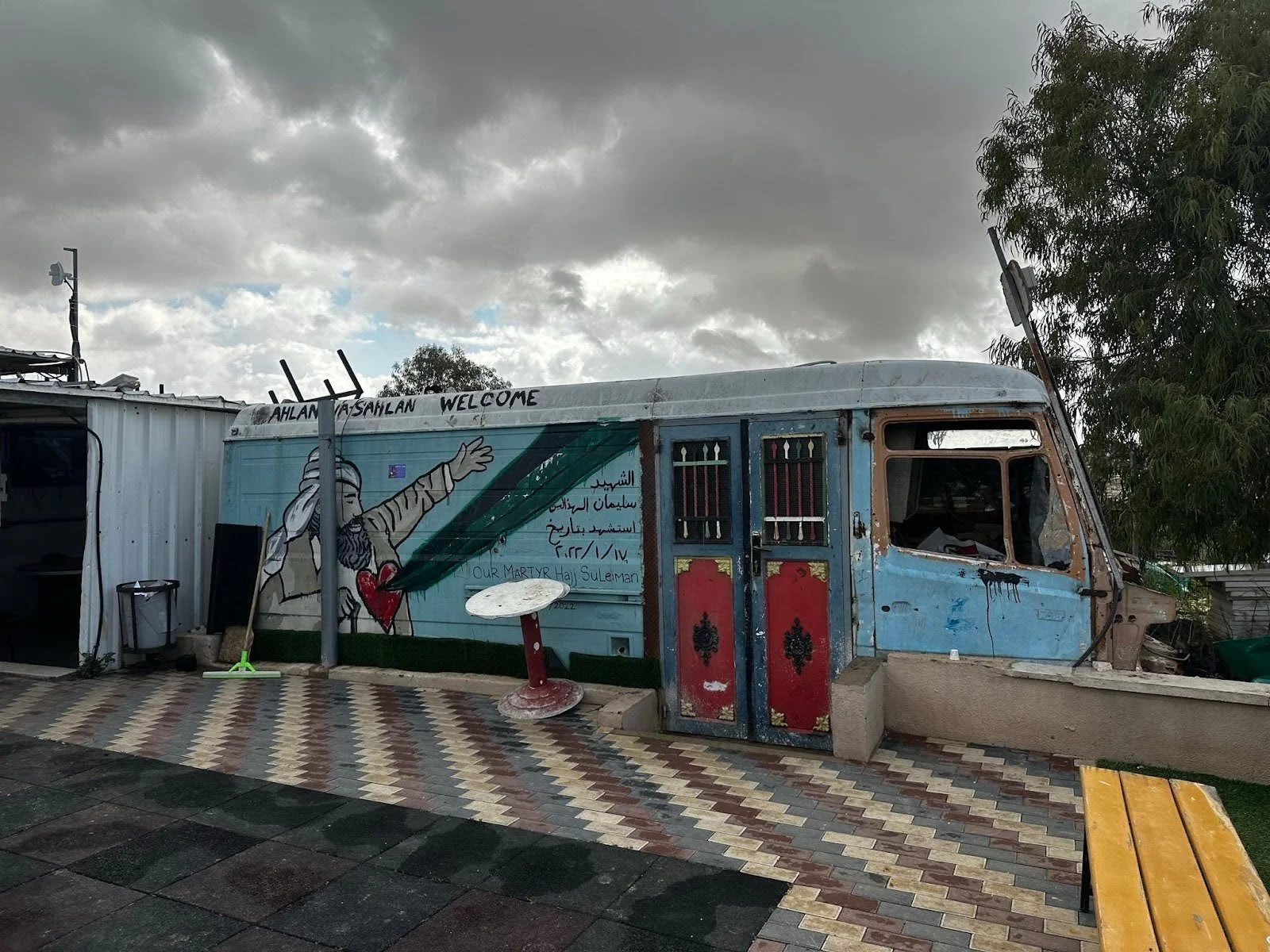 We also couldn’t deny the scent of cardamom. Such brutal conditions the Palestinian people are enduring, but they’re enduring! Every olive grove and rain basin testifies to their persistence. As we pulled into Umm Al-Khair, a Palestinian village of 37 families in the foothills of Hebron, the scent only grew stronger. We were warmly greeted by our hosts from the village. They brought us into their library, fed us lunch, and offered us coffee from their limited supply of water. It was beyond humbling for people scraping out existence amidst the manufactured scarcity of apartheid to share with us as generously as they did.